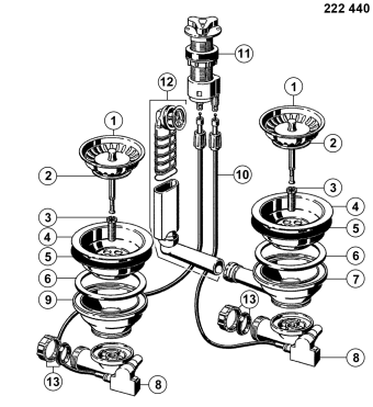 Basket strainer 3.5" pop-up Ø=82 mm (24 drainage slots) VI Spareparts |
