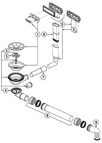 Set: outlet/overflow black, single bowl, black matt Spareparts |