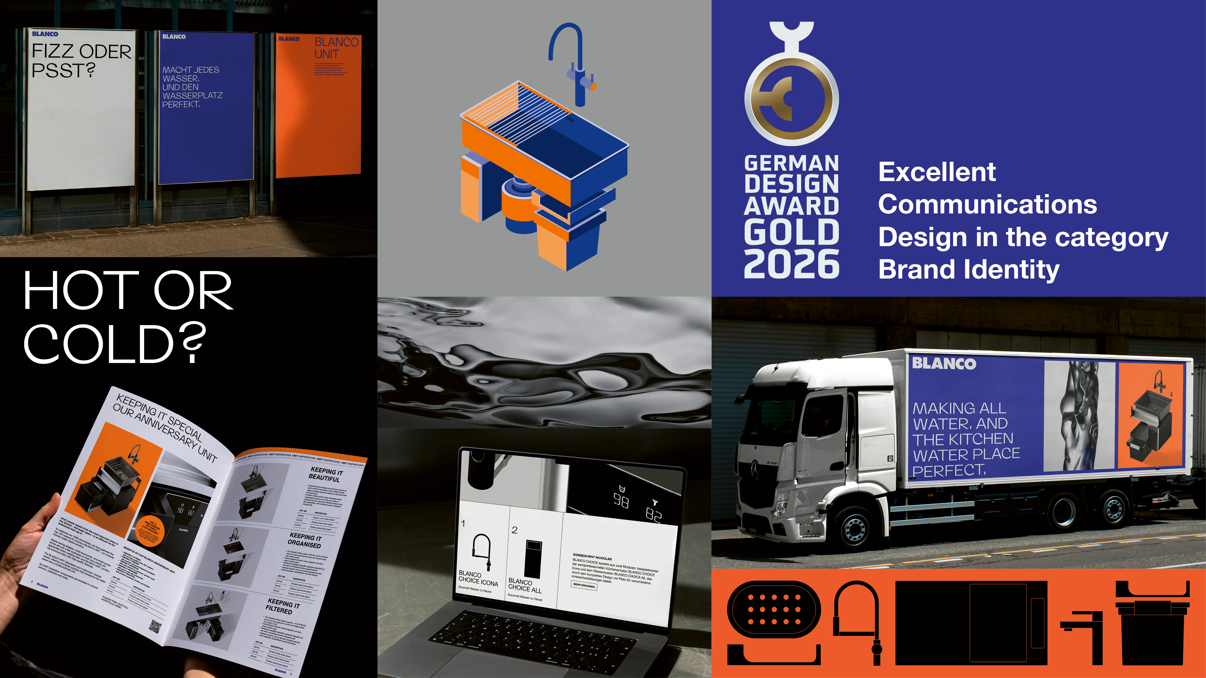 The jury said: "Strong color schemes, expressive typography, and striking imagery characterize the 'New Blanco Brand Identity'. The iconic logo remains a defining feature, while the design consistently focuses on the kitchen sink area. Particularly impressive is the consistent implementation, which creates a clear differentiation and credibly combines high standards of aesthetics, functionality, and brand profile."