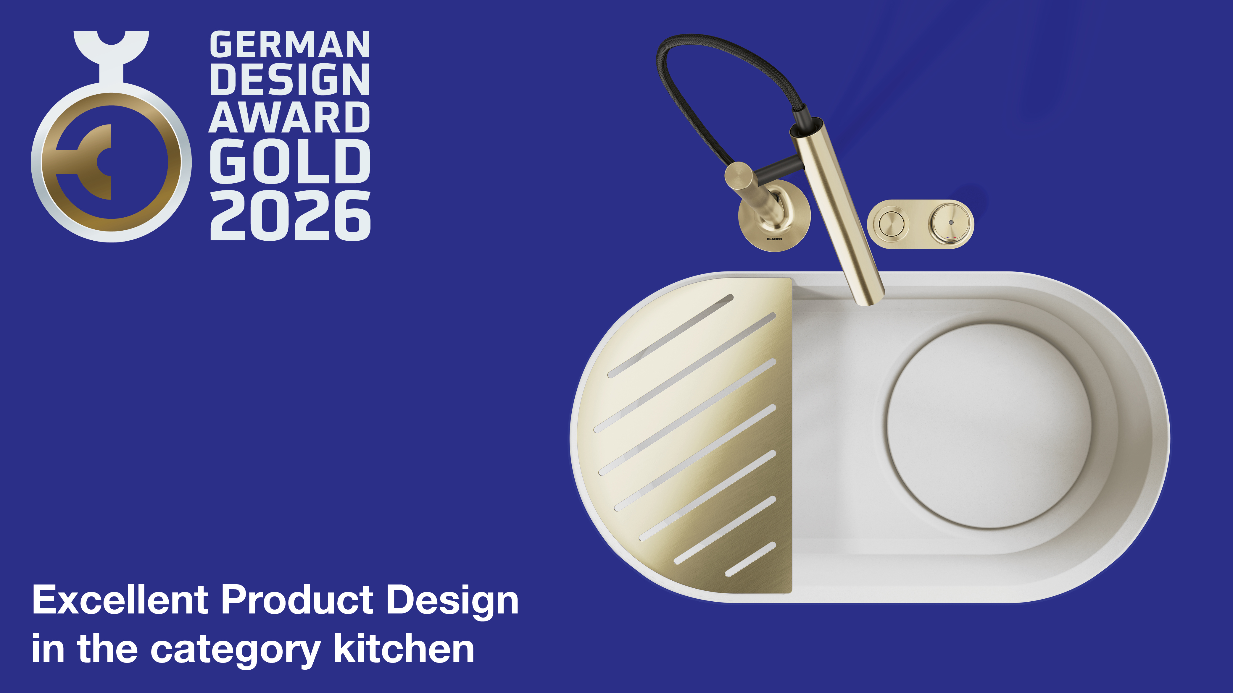 Oberderdingen, February 6, 2026 – BLANCO is starting the new year with two awards: The German Design Council presented the company with a German Design Award 2026 in gold for its BLANCO UNIT with the LUNEOO faucet and the OOVALON sink. The pioneer in system solutions for kitchen waterplace also received a German Design Award in gold for its new brand identity, which BLANCO has been rolling out worldwide over the past year.