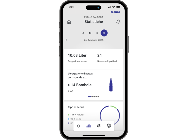 Con l'app BLANCO UNIT non solo potrete controllare il vostro drink.system BLANCO, ma potrete anche configurarlo secondo le vostre preferenze. Potrete impostare la durezza e la temperatura dell'acqua in base ai vostri gusti. Ma è possibile fare molto altro.